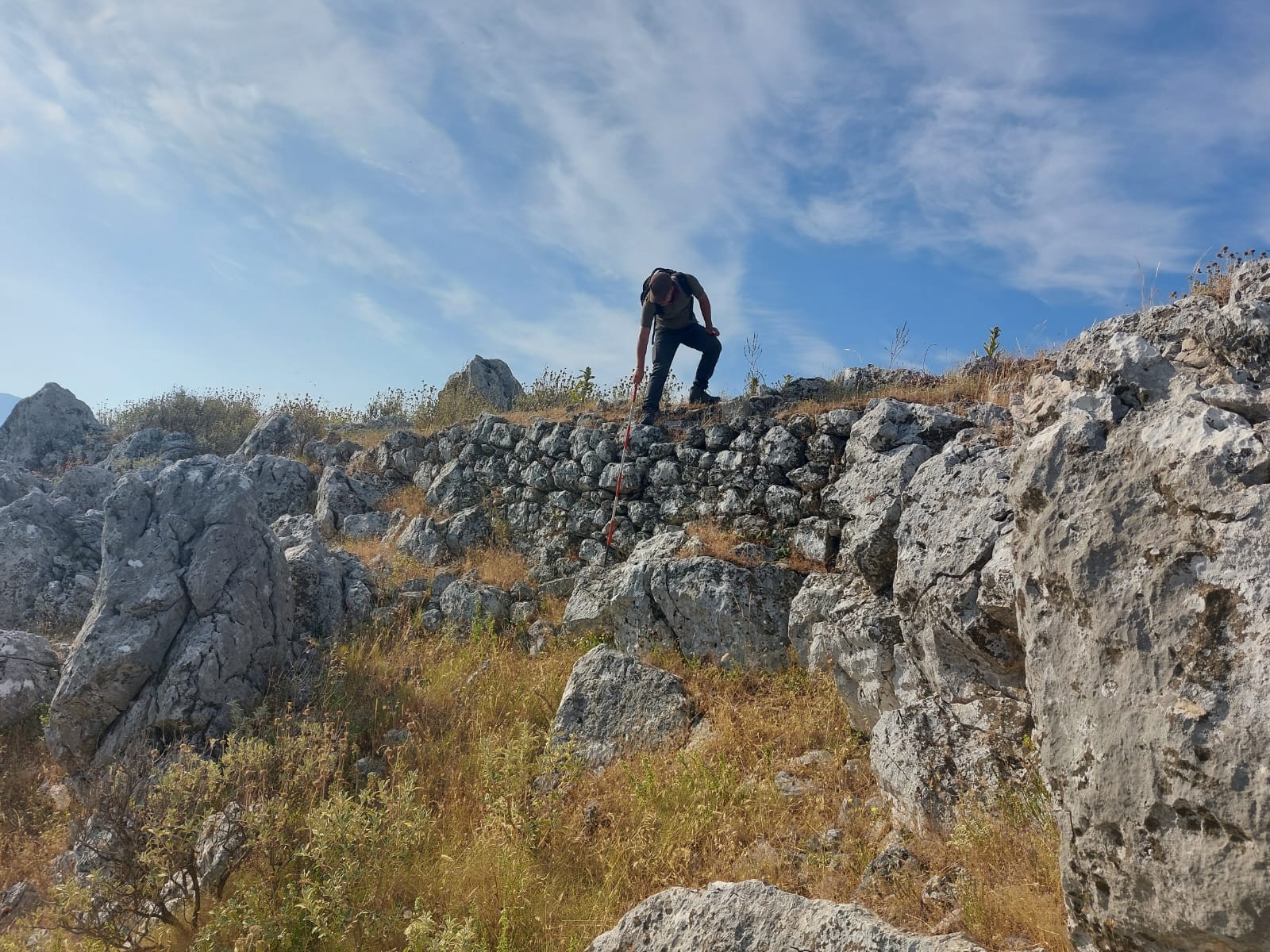 Inoltre, si è proceduto alla verifica e schedatura archeologica dei resti archeologici identificati dai rilievi della campagna precedente (2021). Attraverso un paziente lavoro di identificazione, schedatura, documentazione fotografica e analisi sono stati documentati grande parte dei settori della città, un lavoro reso particolarmente difficoltoso dalla natura accidentata e in forte pendenza del terreno. Questa importantissima verifica ha portato da un lato all’esclusione dal quadro di interesse archeologico di alcune tracce individuate dalla fotorafia aerea, da attribuire alla naturale conformazione del terreno, dall’altra alla conferma della stragrande maggioranza degli altri rilievi e all’identificazione di altre strutture e complessi la cui identificazione dall’alto era resa difficile o impossibile per diversi fattori. Si dispone, a questo punto, di una base archeologica molto solida per la ricostruzione della planimetrie del centro antico, comprendente non solo le fortificazioni ma anche le numerose abitazione e altri terrazzi edificati che sono stati individuati.